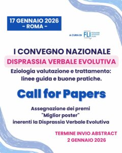 Cari colleghi, è aperta la CALL FOR PAPERS per il miglior poster inerente la disprassia verbale evolutiva.