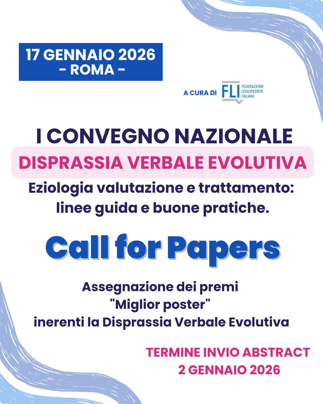 Gli abstract accettati a seguito della procedura peer review saranno pubblicati sul sito della Federazione Logopedisti Italiani.