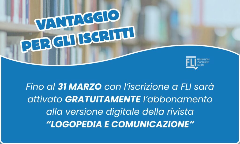 Anche per il 2026 con l’iscrizione a FLI EFFETTUATA ENTRO IL 31 MARZO sarà attivato GRATUITAMENTE l’abbonamento annuale all’edizione digitale della rivista “Logopedia e Comunicazione” edizioni Erickson, con accesso ai[…..]