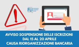 ATTENZIONE DAL 15 AL 20 APRILE LE ISCRIZIONI A FLI SONO MOMENTANEAMENTE SOSPESE A CAUSA DI UNA RIORGANIZZAZIONE BANCARIA. SARANNO NUOVAMENTE OPERATIVE DAL 21 APRILE