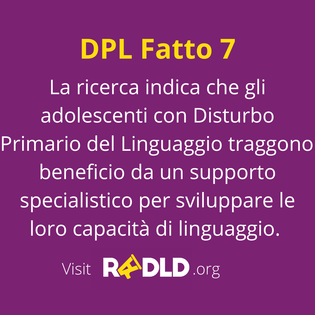Il DPL rende difficoltoso acquisire, comprendere e usare le parole in maniera fluida e corretta, in assenza di compromissione delle abilità sensoriali, motorie e intellettive. Solo circa 1/3 dei bambini e bambine ricevono la giusta presa in carico e un trattamento riabilitativo mirato a causa di un riconoscimento tardivo. Tutte le info sul sito fli.it